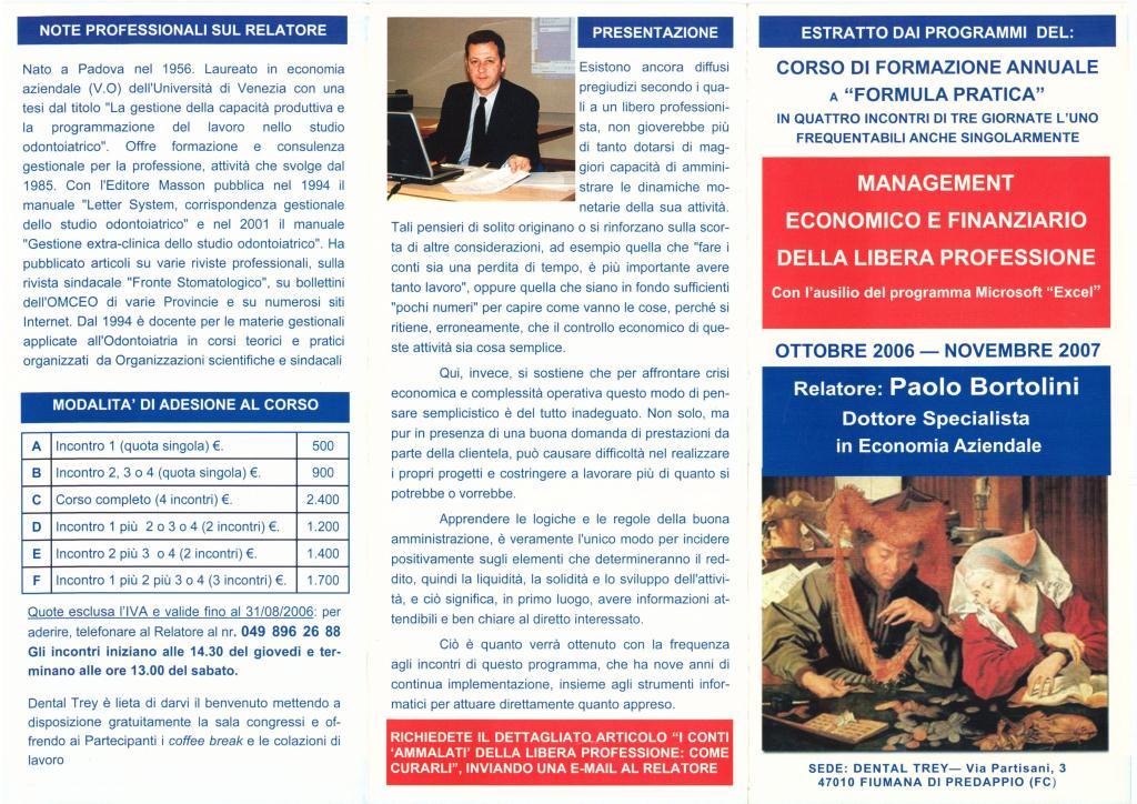 Fronte depliant 2006-2007. All’inizio erano 4 incontri. Non c’era l’assistenza via Internet e non si assegnavano crediti ECM. Si poteva partecipare ad incontri singoli