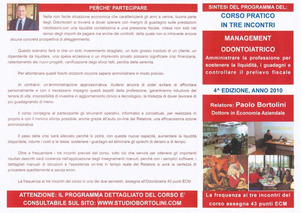 Breve “Storia illustrata” del Corso Pratico di Management per l’Odontoiatra attraverso i suoi depliant