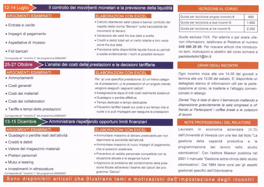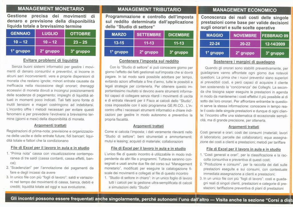Retro depliant 2007. La presentazione degli incontri è prolissa nei titoli, ma acquista schematicità l’illustrazione degli argomenti e del software