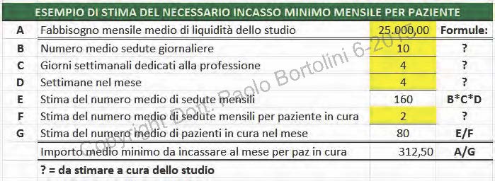 L’approccio deve essere globale, centrato cioè sulla massa dei pazienti in cura, fra i quali ci sarà chi paga “lento” e chi paga “rock”: i secondi sovvenzionano i primi, l’importante è riuscire a incassare quanto serve per fare fronte ai propri impegni di pagamento a fine mese. Questo approccio globale è da tempo fra gli argomenti dei miei corsi. Servono però dei numeri, ma che siano chiari, altrimenti si perde tempo e magari si sbaglia pure.
